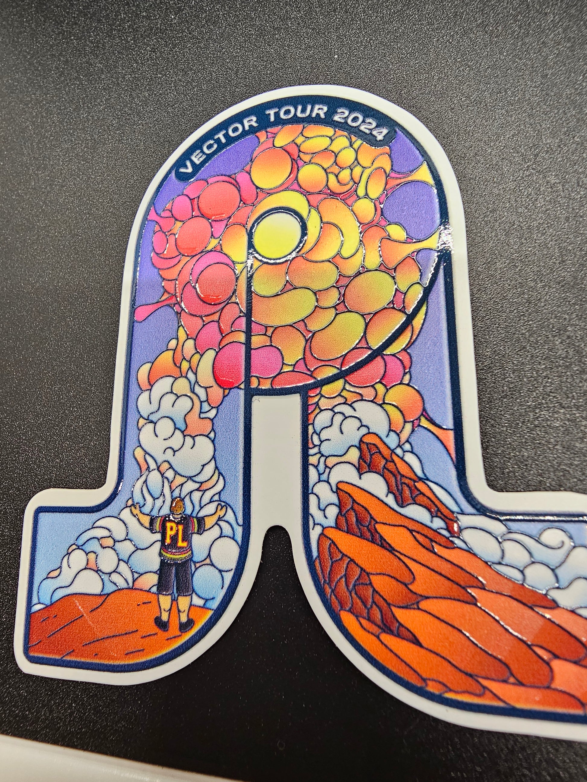Celebrate the Pretty Lights Vector Tour with this exclusive, limited-edition hat pin! It's 1.75 inches with two pin clasps to keep it secure. This bundle includes the pin, a matching sticker, and some surprise goodies—all for just $22.